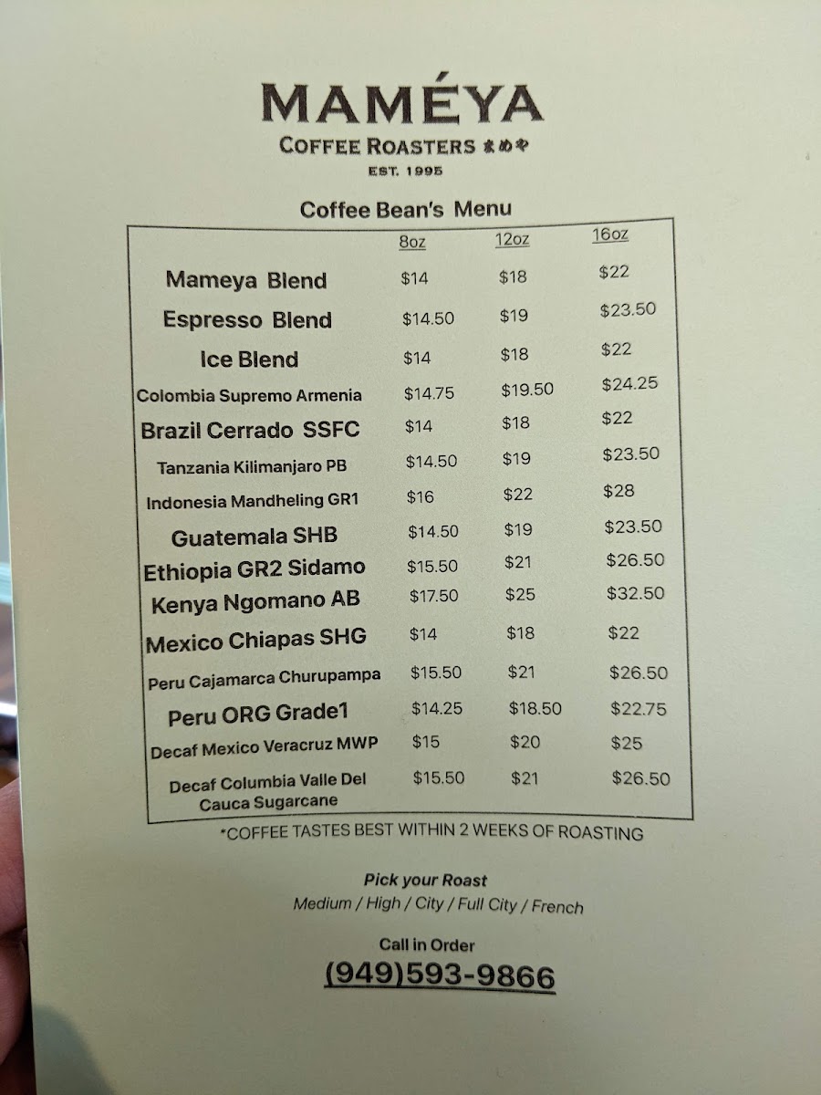 Welcome to Mameya Coffee Roasters, where the art of coffee is celebrated daily. Nestled in Laguna Niguel, CA, this gem offers freshly roasted specialty beans from around the world, with a unique focus on hands-on roasting tailored to your preference.